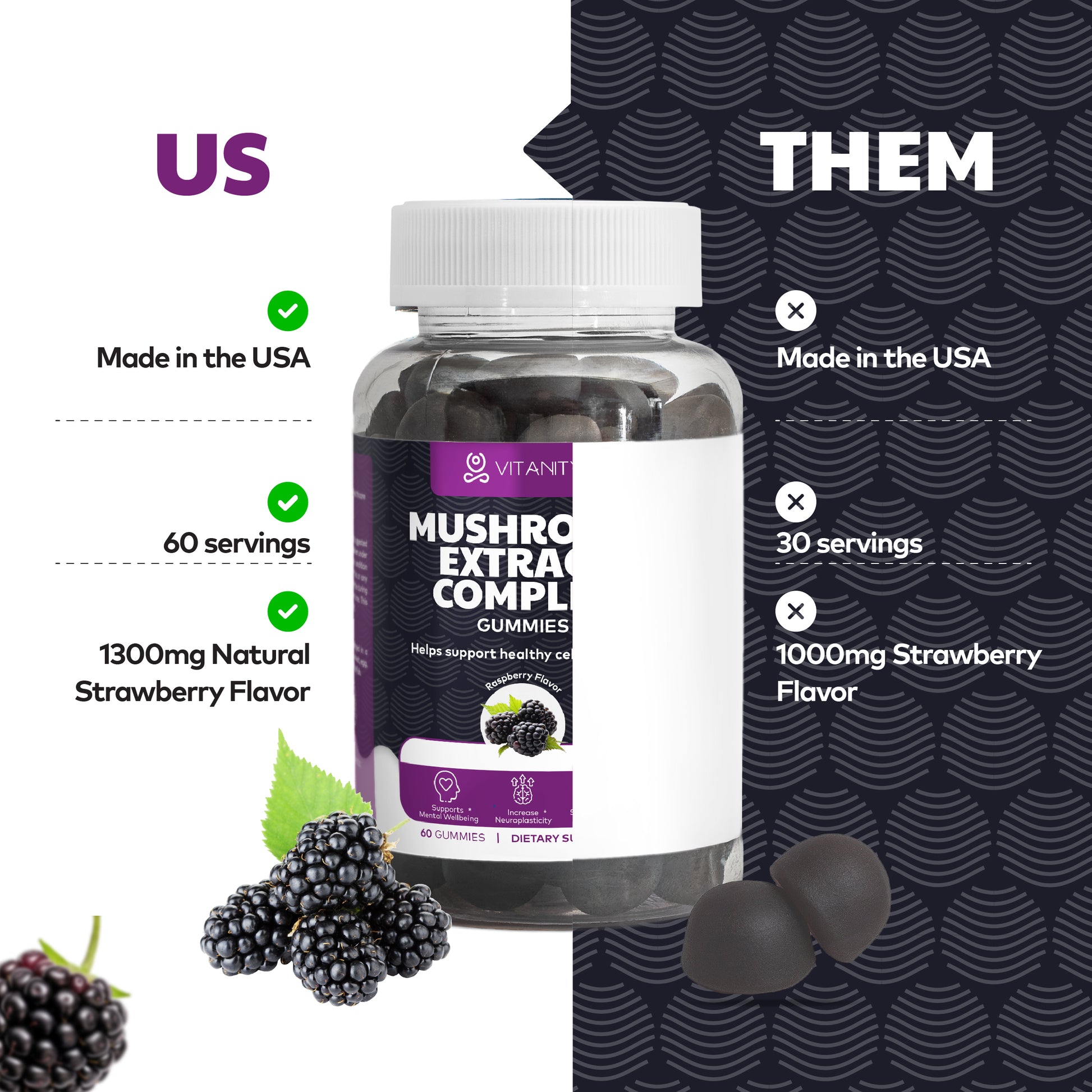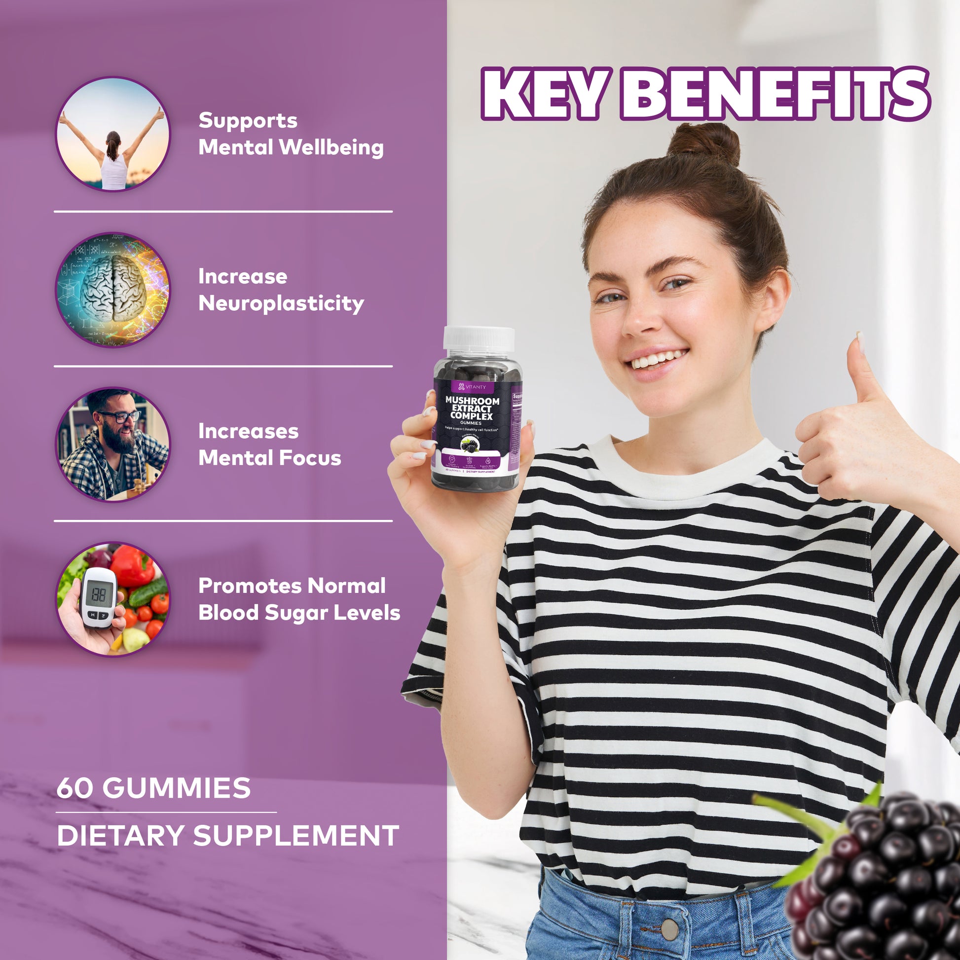 Mushroom Extract Complex Gummies - Brain Focus & Energy Boost